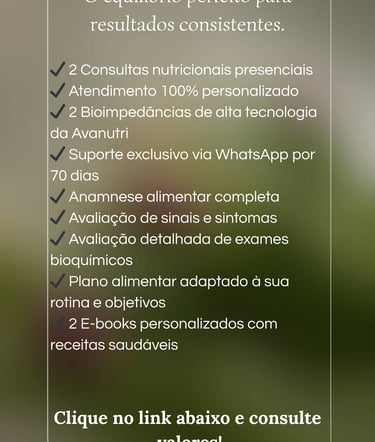 Transforme seus hábitos alimentares e veja a diferença em sua saúde e bem-estar. Acompanhamento próximo e resultados mensuráveis.