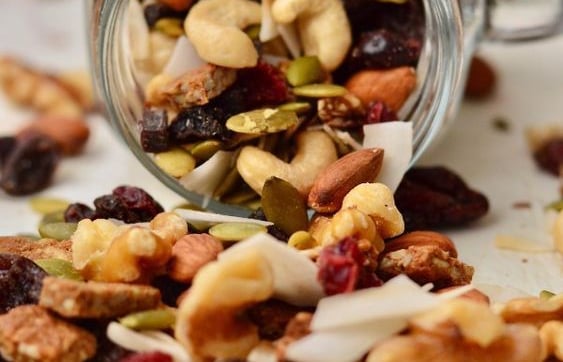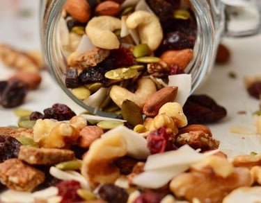 1. Mix de Nozes e Sementes: Combine amêndoas, nozes e sementes de girassol. Este lanche é rico em proteínas e gorduras saudáveis. Para armazenar, utilize potes herméticos que podem ser levados na bolsa.